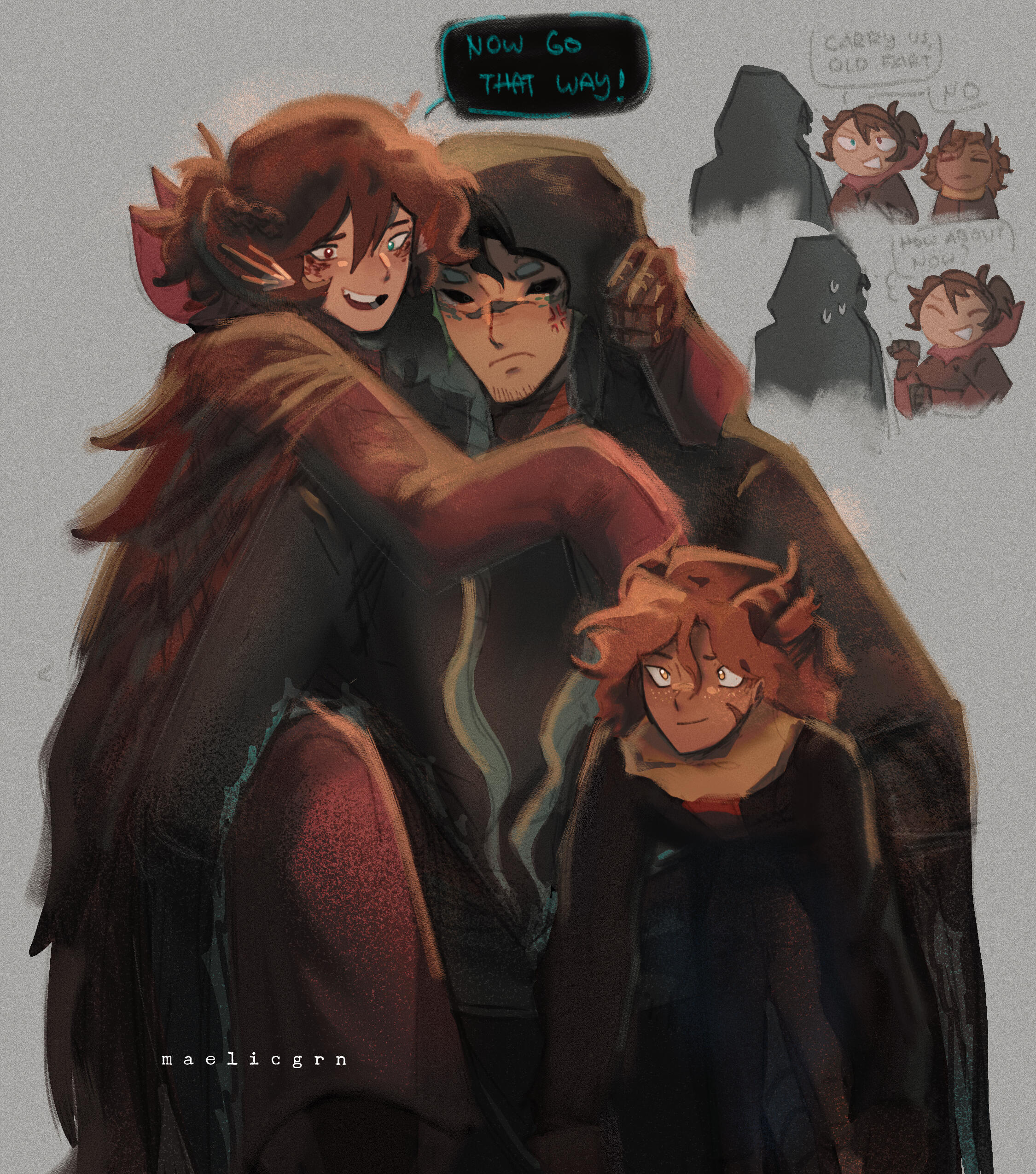 More art can be found in places where I live online. My tumblr and instagram (and occasionally tiktok) are the places I keep the most updated with art and doodles of the cast. my links and contact